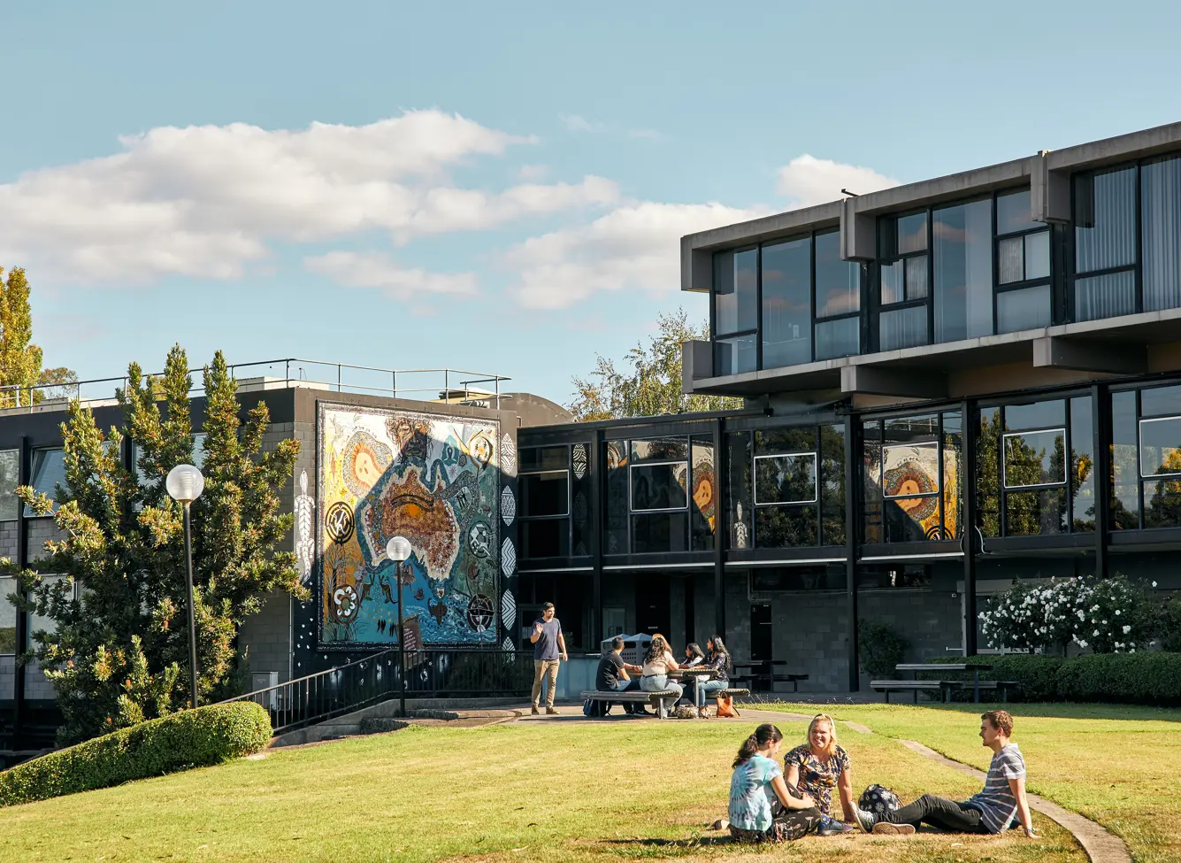 Of course, we have everything you need right on campus: a café, a library, a gallery, a bookshop, sporting facilities, manicured gardens, a student lounge and more. The buildings are modern and comfortable, and the views are incredible.